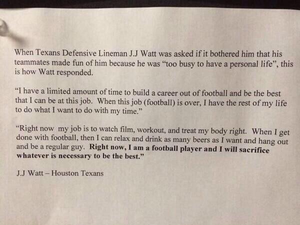 For those of you who don’t know, J.J. Watt is an all-pro defensive lineman for the Houston Texans in the NFL.